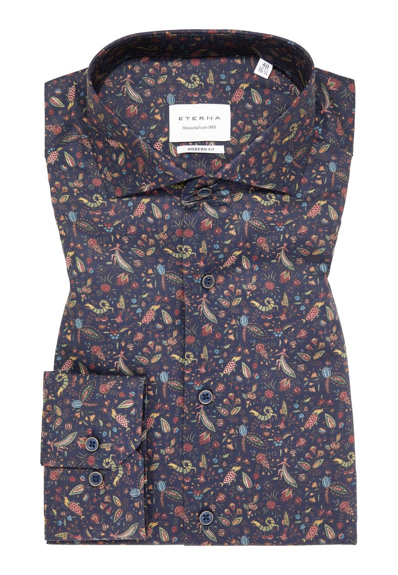 Denne MODERN FIT skjorte, i et let skræddersyet snit, kommer med et afslappet all-over print og en moderigtig hajkrave.