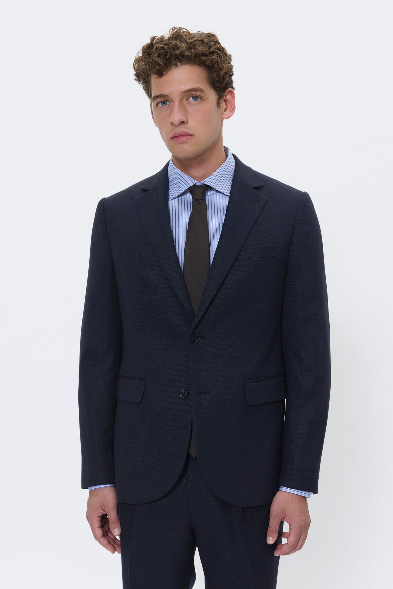 Denne herreblazer har en smal pasform, klassisk reverskrave og praktiske klaplommer. Komfortabelt design, der passer til både formelle og professionelle begivenheder.