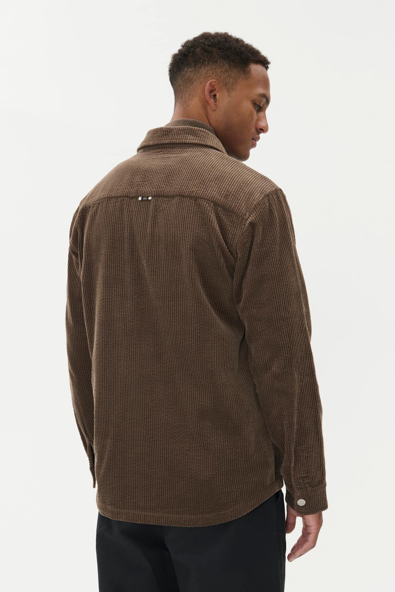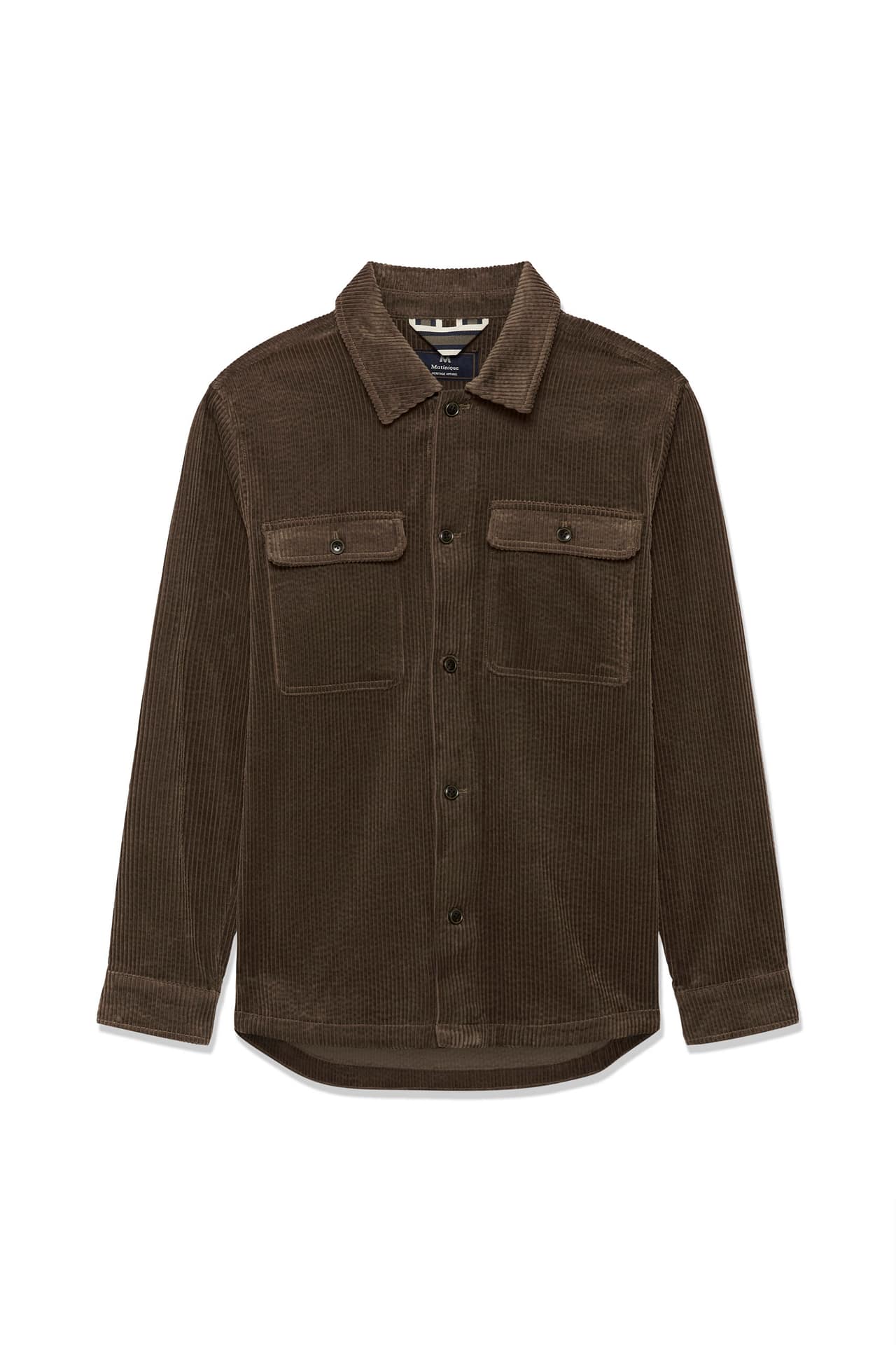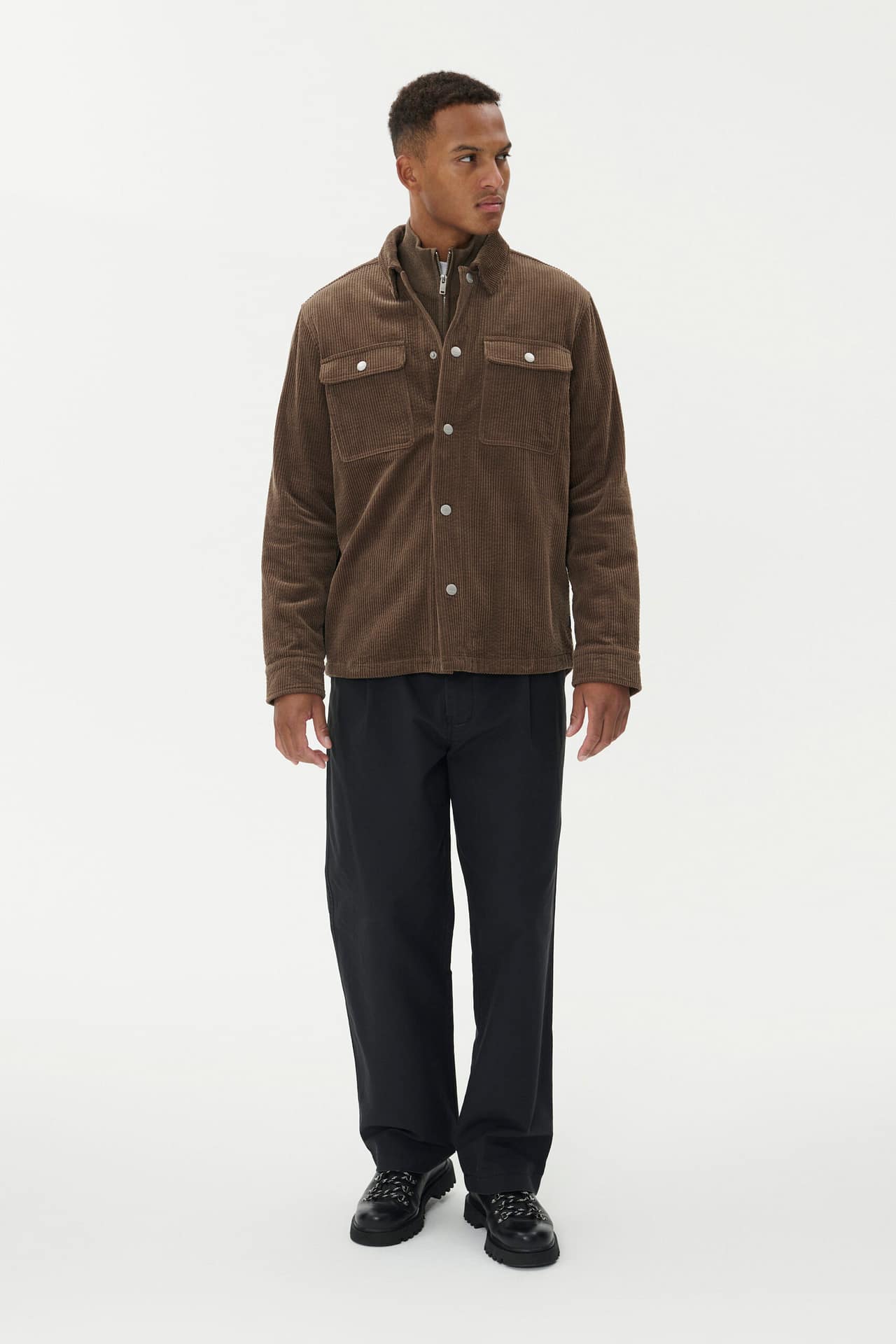Herre cordfløjlsskjortejakke med almindelig pasform, klassisk skjortekrave, lange ærmer, markante frontlommer og knaplukning. Behagelig model der egner sig til lag og alsidig brug.