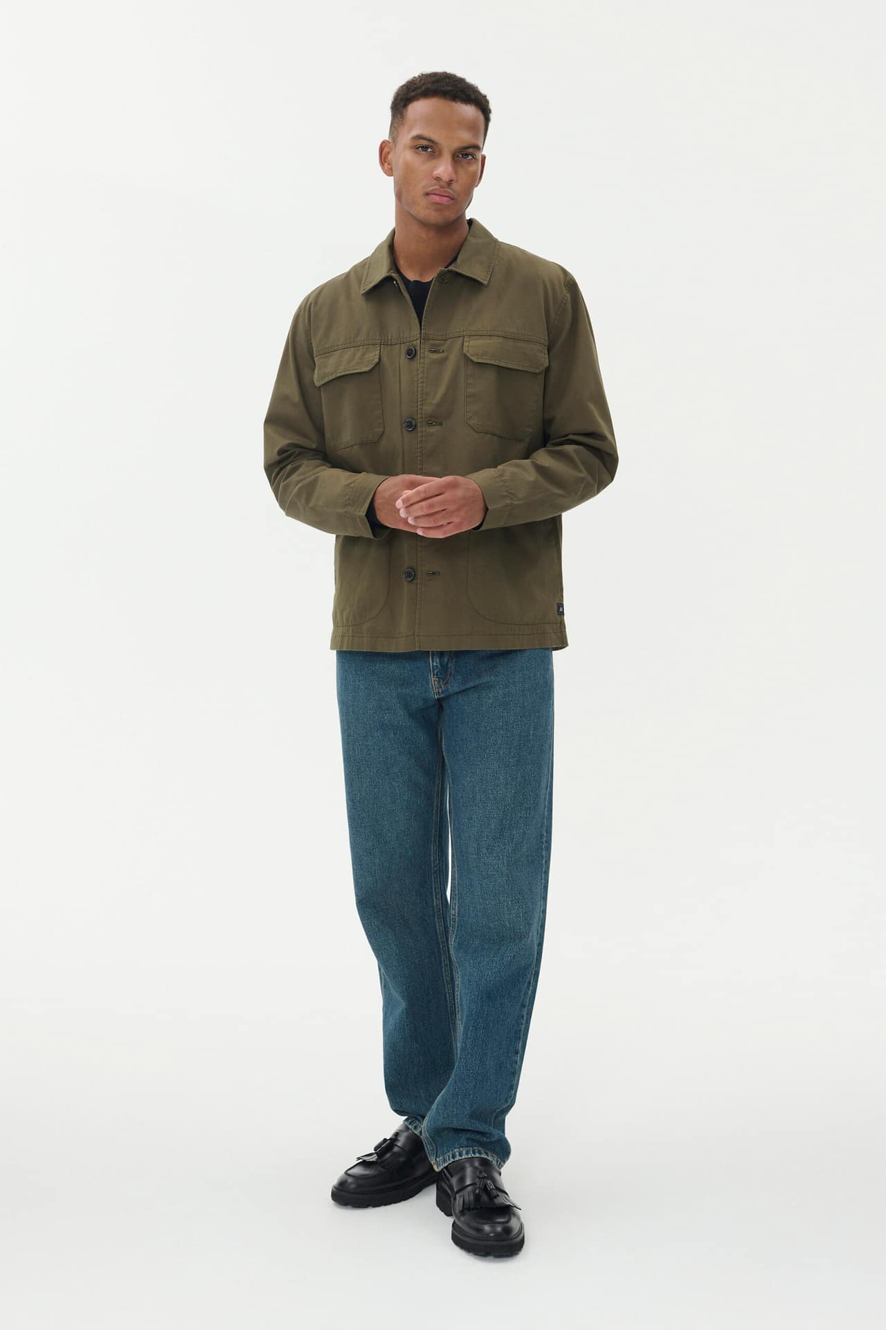Herre overshirt kombinerer en regular pasform med klassisk krave og praktisk knaplukning. Byder på lange ærmer, brystlommer og lige kant for komfort og alsidig smart-casual stil.