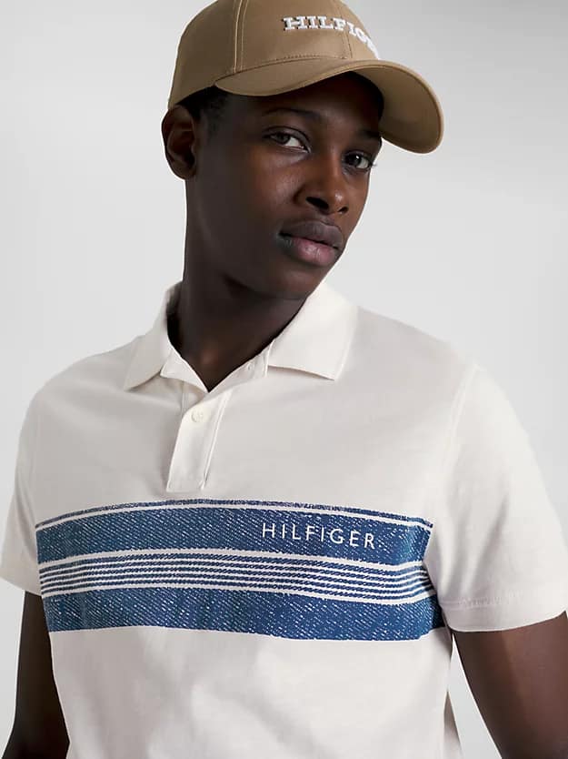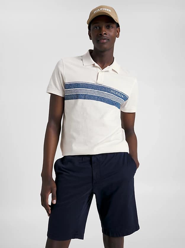 Et udformet stribet design på tværs af brystet bringer en vintage vibe til denne klassiske polo, lavet af kraftig slub bomuldsjersey.